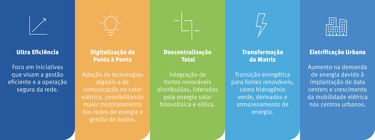 Com o objetivo de identificar oportunidades, foi realizado um mapeamento completo de cenários e tecnologias que pudessem antecipar o futuro do setor para o Grupo CPFL. Confira as 5 principais tendências que identificamos: