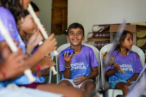 Crianças em aula de inicialização musical em comunidade indígena de João Câmara (RN) | Foto: acervo Instituto CPFL